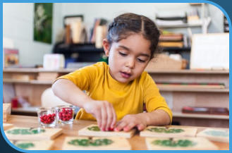 memorize 3 x 4 = 12, they touch and see 3 rows of 4. The Montessori